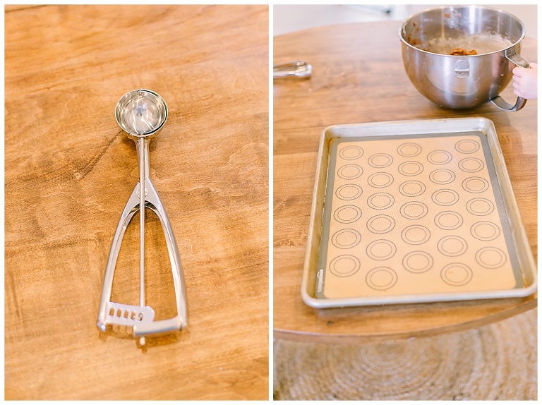 I use the smallest of these scoops from amazon or just use a spoon and plop them on a baking sheet with parchment paper or a silicon sheet like this one from amazon as well