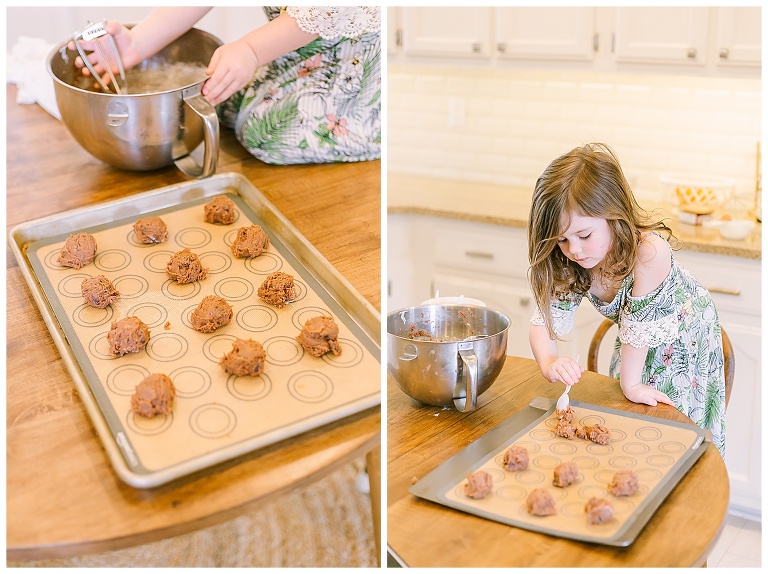 One of the favorite activities for my household is baking in the kitchen. I joke with people that my house is clean for 30 minutes on Tuesdays after the housekeepers leave at 1:00 and we return at 1:30. Then its covered in sprinkles, flour, glitter, paint or any number of other things my kids can find to create a “mess” with. So it only makes sense to do our first post about a recipe we love… CHOCOLATE-CHOCOLATE CHIP COOKIES. Are you ready for some chocolatey goodness to come your way? PREPARE yourselves!