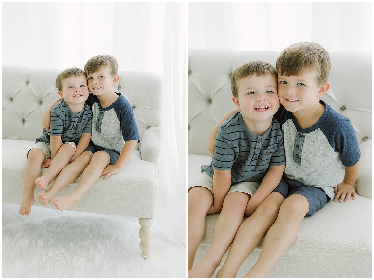 Martin, family of FIVE, in the studio! You’d never know that they had a flat tire right before their session! Mom and dad were easy-going, big brothers played with blocks when they weren’t cheesing for the camera, and baby Martin slept until the very end of the session. It was the sweetest morning with these boys and this beautiful lady! Anna Cate shot this newborn session in The KNP Studio.