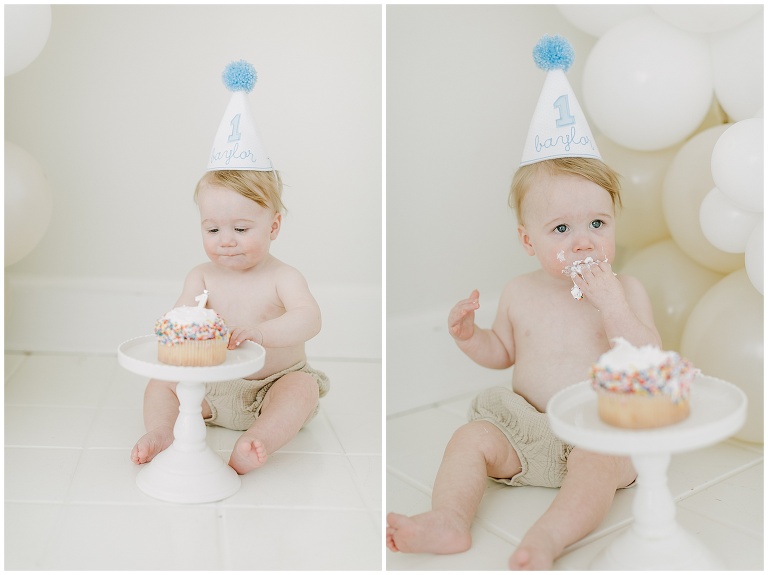 The perfect time to schedule a milestone session is a first birthday! It’s so important and special to capture all the details of your babies as they grow up; these are the days you never want to forget! Brittany shot this handsome, blue-eyed, birthday boy and his momma in the KNP Studio!