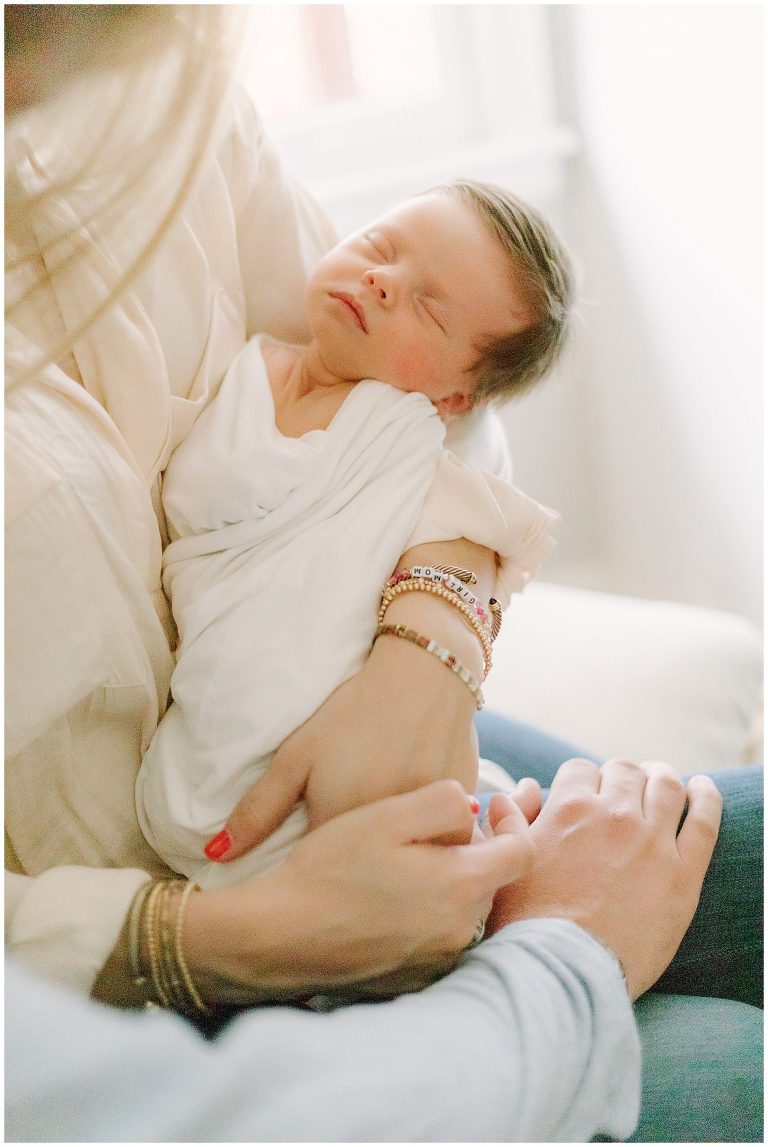You would never know that this beautiful lifestyle newborn session was in the middle of a thunderstorm! Baby girl slept almost the whole session while her sweet parents beamed with pride; it was pure joy to be with these three. Enjoy a look into this cozy in-home newborn session shot by Anna Cate!