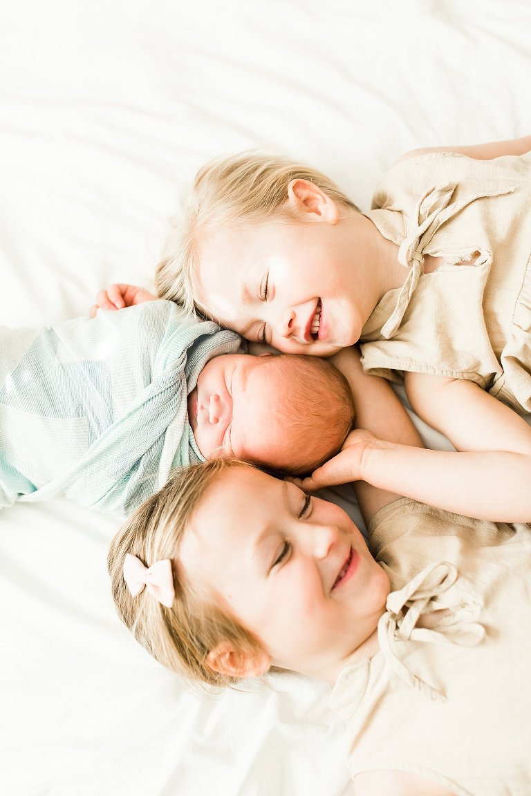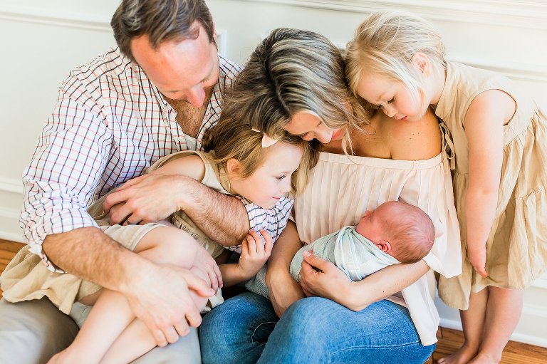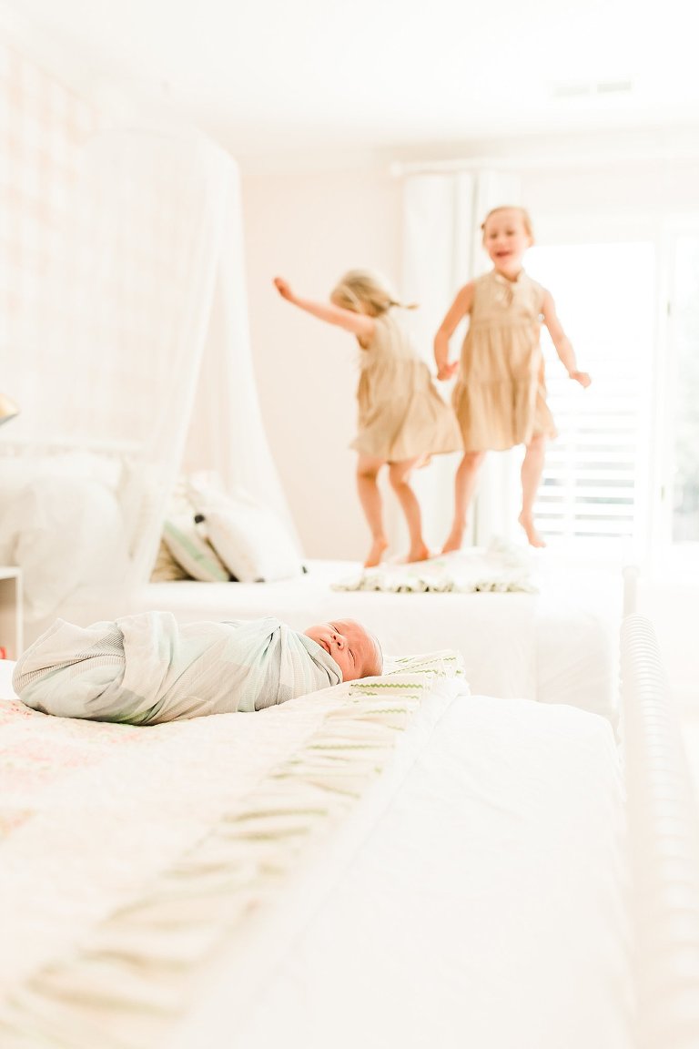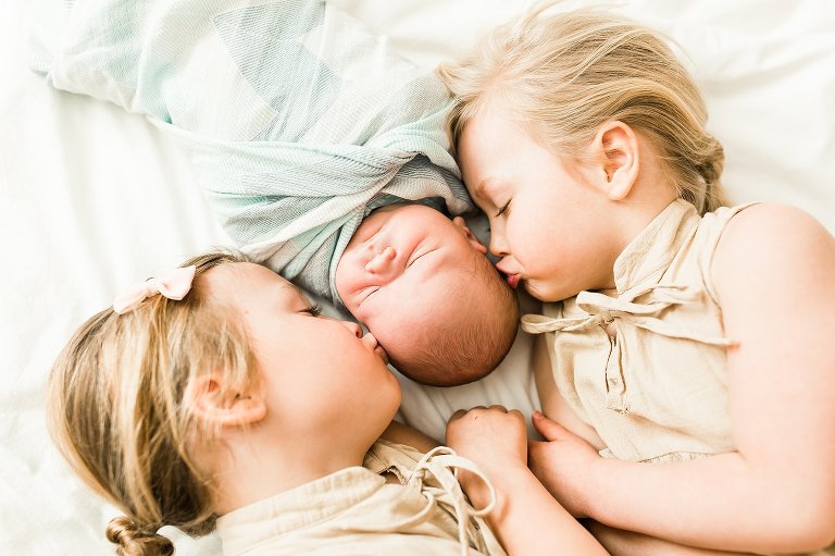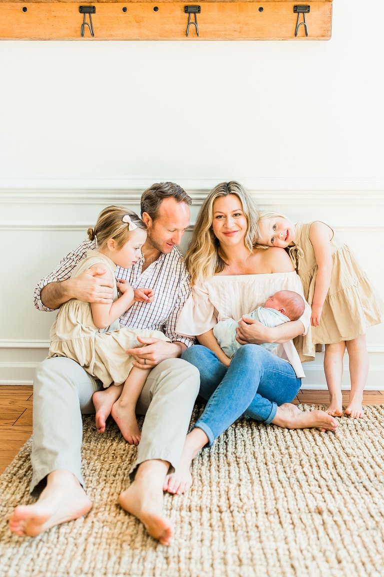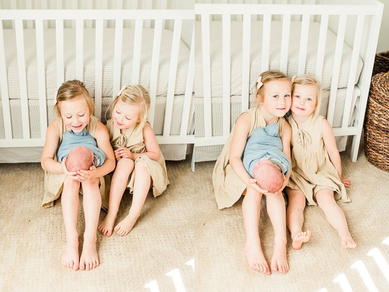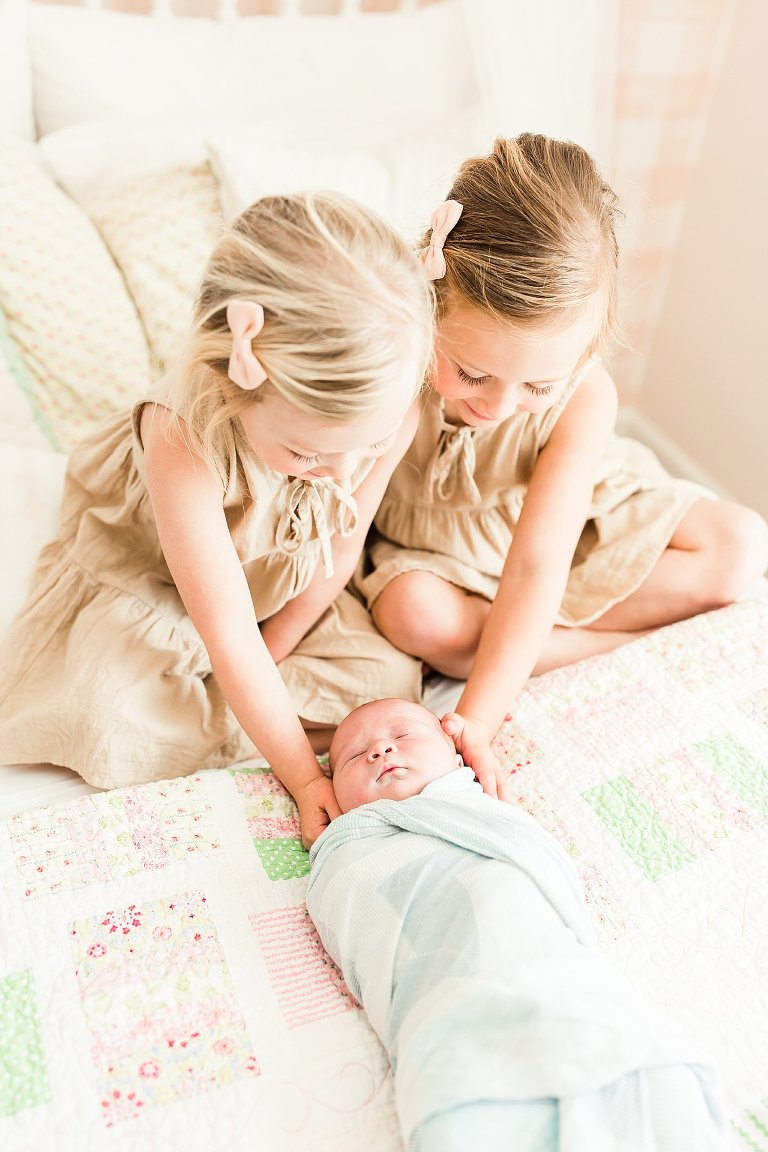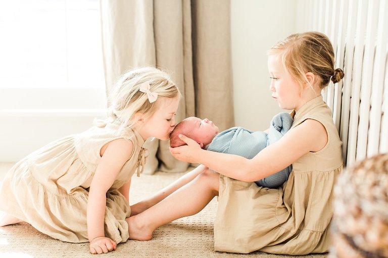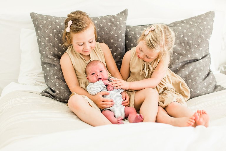 There are awesome newborn sessions and there are AWESOME newborn sessions and this in home family session featuring the newest addition baby brother Beau was an AWESOME session. His big sisters are not only adorable but so sweet and love having a new baby brother. I had the best time documenting them in their beautiful home, it was right up my alley with big windows and lots of white. Y’all know I’m obsessed with white and natural light, you just can’t get much better than that.